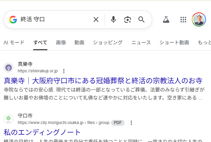 今回、住職様が狙ったキーワードは「終活 守口市」
