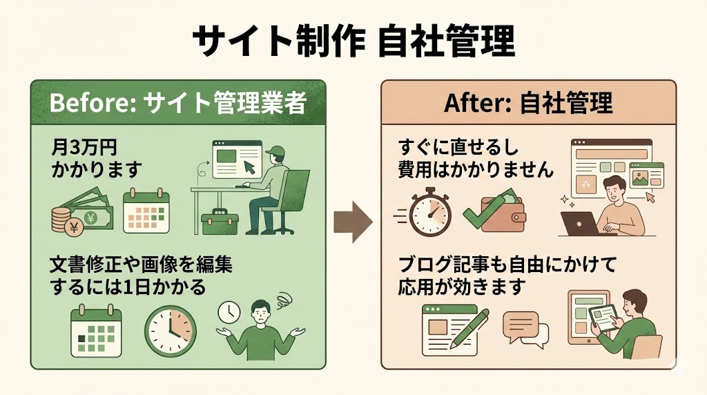 自分で触れるからこそ、サイトは成長し、信頼を生むのです。