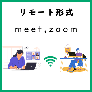 Zoomなどのオンライン会議システムを使用し、ご自宅や職場から気軽に参加できます。画面共有機能を使い、対面と変わらないクオリティの指導を行います。