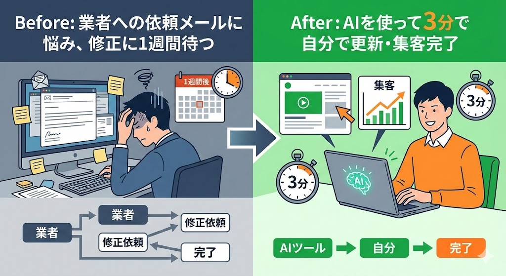 【Before】 業者任せで修正に費用がかかり、更新も遅い…